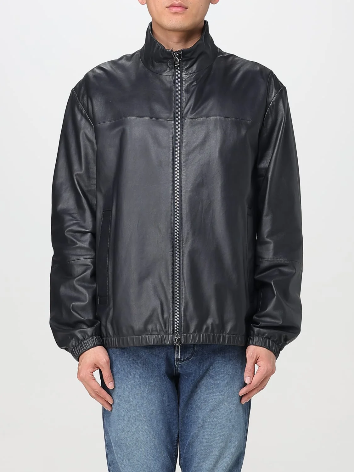 DESCRIPTION - Style: Urban-street - Neck: High - Shoulders: Relaxed - Sleeves: Long - Closure: With zip and double slider - Pockets: America - Bottom: Stretch - Length: Short jackets - Materials: Nappa lambskin - Pattern: Plain-colored DETAILS AND CARE Composition LAMB LEATHER 100% SIZE AND FIT Sizes not available Size and fit Relaxed fit Designer code: 01R55P01P54 922 Giglio Code: G91019 Designer: Emporio Armani Collection: Emporio Armani Men Category: Clothing Emporio Armani