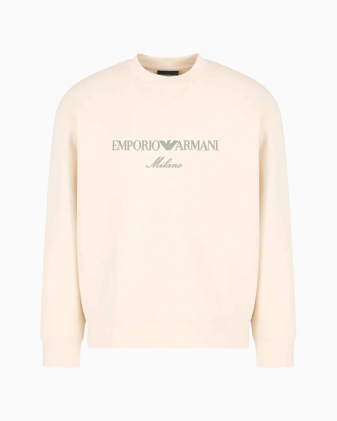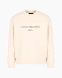 Crew-neck sweatshirt made from soft double jersey and featuring a front logo. The logo embroidered on the front adds distinction to a garment designed to be worn every day by the quintessential Emporio Armani man. Regular fit Double jersey Crew neck Long sleeves Logo embroidery Product Code: EM001052AF10013M1052