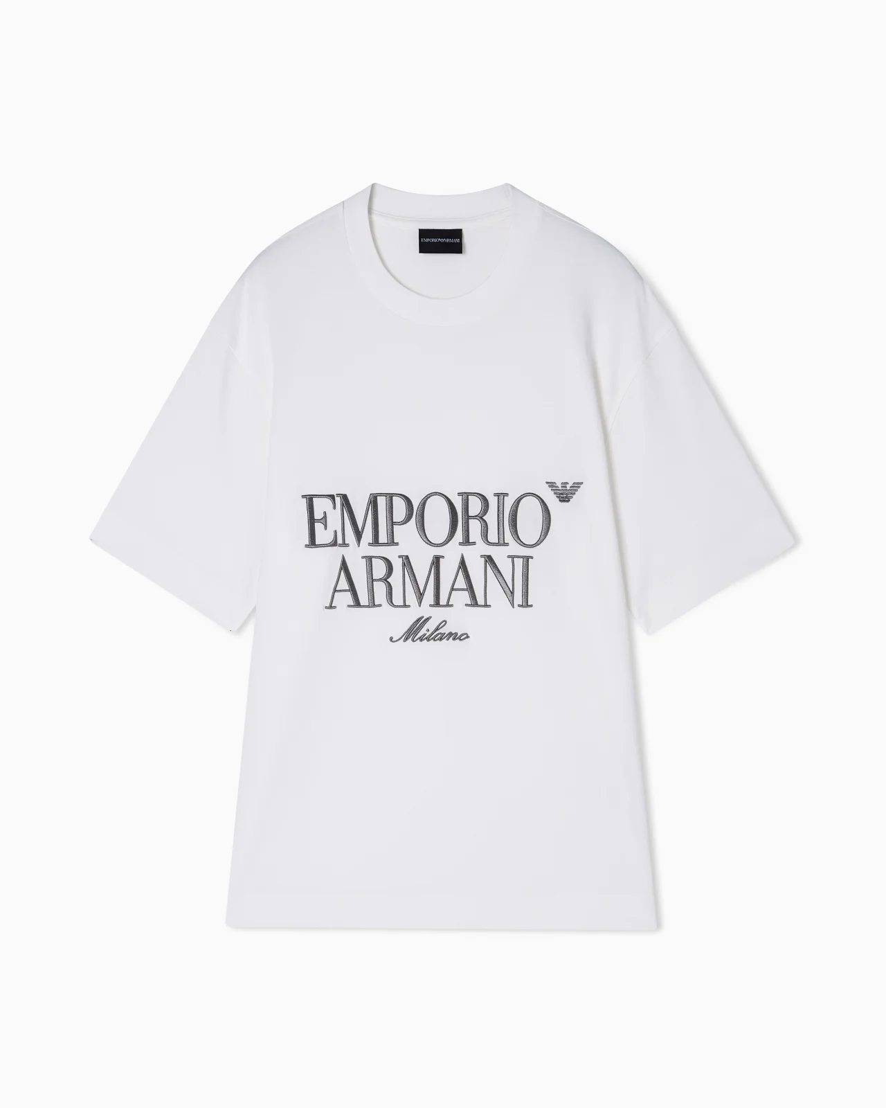 Crew-neck T-shirt made from pure cotton jersey, featuring a super-embossed embroidered Emporio Armani logo. An essential piece in the male wardrobe, perfect for a casual and comfortable look. Regular fit Heavyweight jersey Crew neck Short sleeves Embossed embroidery Product Code: EM005359AF13715U0003
