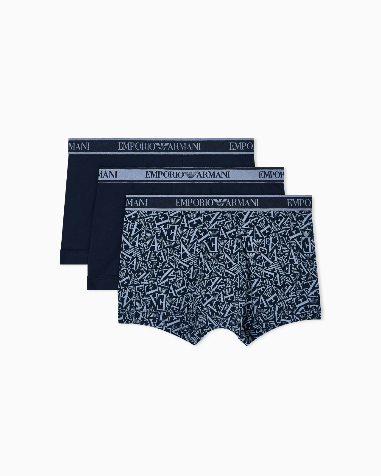 Three-pack of stretch cotton jersey boxer briefs. Elasticated waist with logo. Three-pack Stretch fabric Elasticated waist with logo Product Code: EM000370AF10779MB089