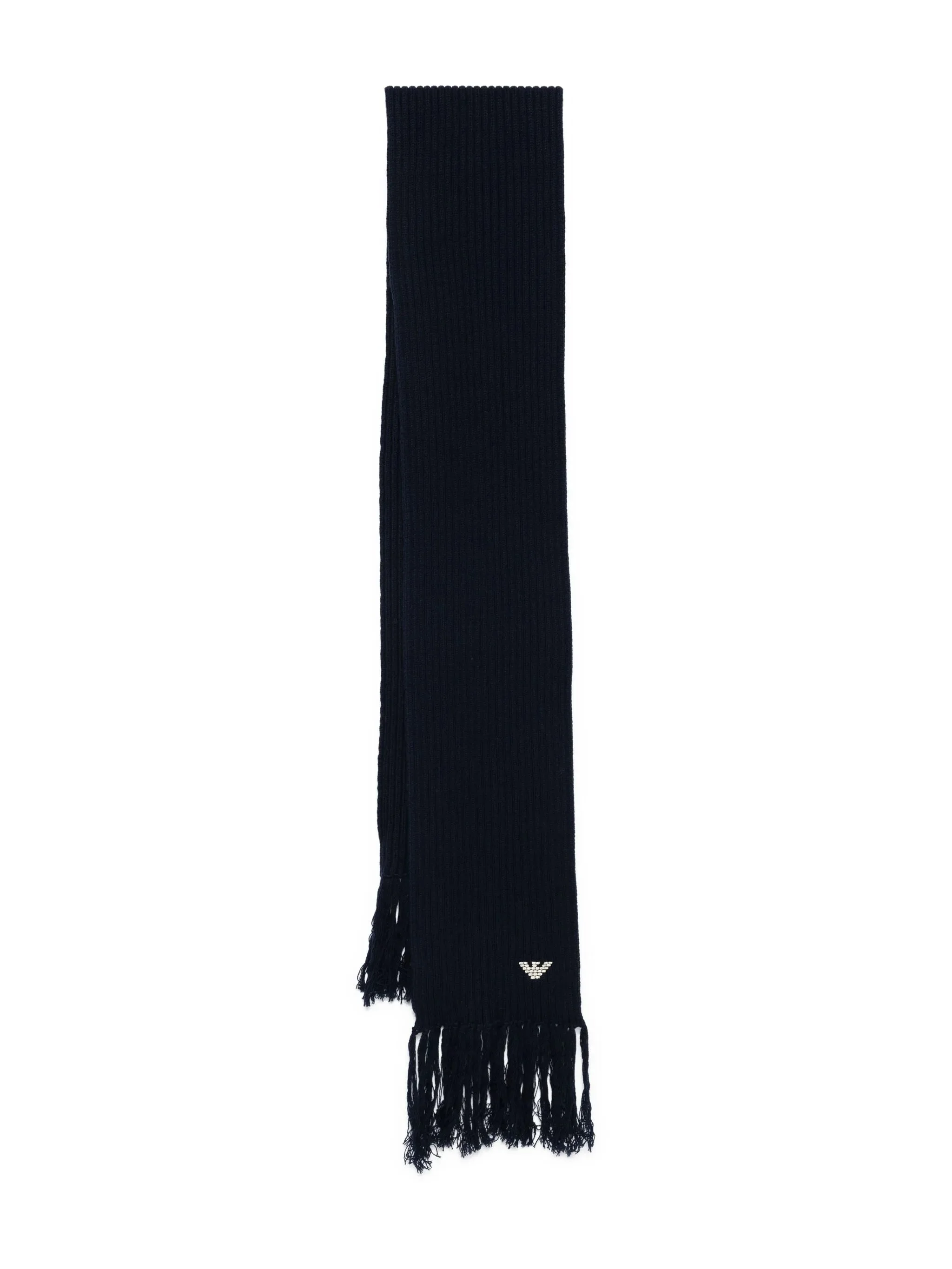 navy blue ribbed knit fringed trim small embroidered logo - length: 270.0 centimetres, width: 30.0 centimetres - Color: BLUE - Made in: China - Designer Style ID: AF17000 EM003651 UB102 Composition and care Cotton: 30.0%, Polyamide: 45.0%, Virgin Wool: 25.0%