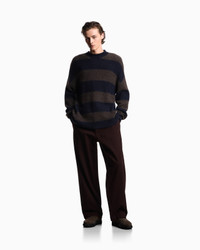 Oversized crew-neck jumper in a blend of virgin wool, alpaca and recycled fibres in a smooth plain knit featuring a contrasting horizontal striped motif. Imagine walking the hectic streets of New York, where every corner tells a story, every street has its own pace. The New York AW25 collection is inspired by this unique energy, intertwining the dynamism of the metropolis with comfort and modern street style. Fabric: 47% recycled polyamide, 25% wool from responsible farming Oversized fit Solid plain knit Striped design Crew neck Long sleeves Ribbed trim Logo patch at the hem on the left Product Code: EM002495AF16996MB042