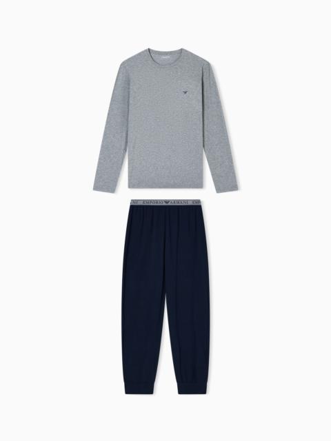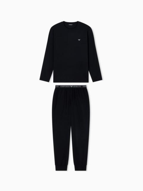 Cotton-jersey pyjamas consisting of a crew-neck top and trousers featuring an elasticated logo waistband. Eagle logo on chest. Stretch jersey 2-piece pyjamas Crew-neck jumper Front micro eagle Trousers with elasticated waist Product Code: EM000610AF10776MC108
