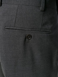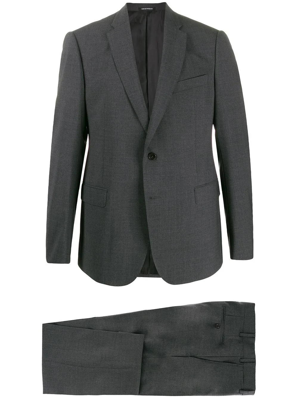 formal suit set By being strongly focused on both style and functionality, Giorgio Armani creates elegant designs for the modern man that combine traditional standards of production with a dash of irreverent attitude, perfectly showcased by this grey virgin wool formal suit set. Featuring classic lapels, a front button fastening, long sleeves, a broad welt chest pocket, front flap pockets, a waistband with belt loops, a straight leg and a regular length. Imported Composition Outer: Virgin Wool 96%, Spandex/Elastane 4% Lining: Acetate 50%, Viscose 50% SIZE & FIT Model measurements Height 6 ft 1 in(1.86 m) Bust/Chest 35.43 in(90 cm) Hips 35.43 in(90 cm) Waist 29.92 in(76 cm) FittingInformation This piece fits true to size. We recommend you get your regular size Cut for a slim fit Made with a mid-weight non-stretch fabric Washing instructions Dry Clean Only