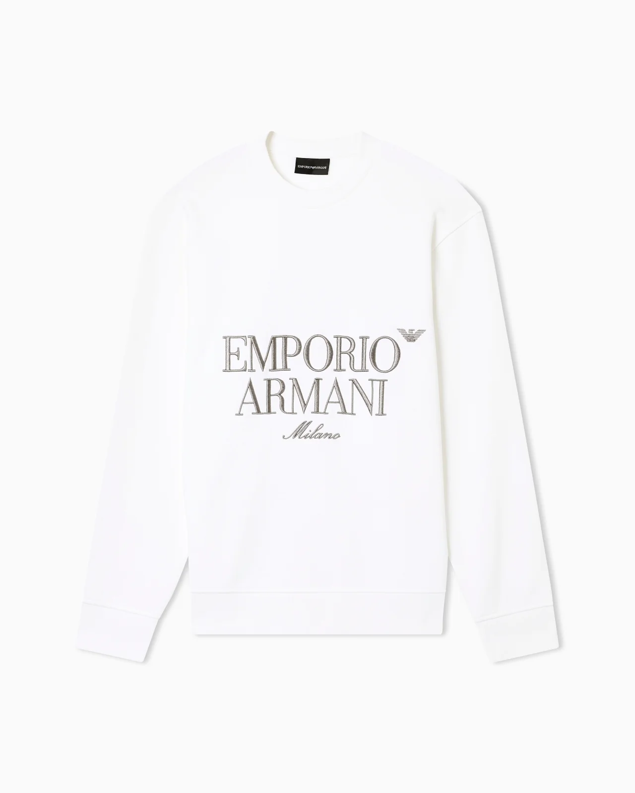 Crew-neck sweatshirt made of cosy French terry, featuring a contrasting embroidered, embossed Emporio Armani logo on the front. An essential piece, perfect for a casual and comfortable look. Regular fit Jersey Crew neck Long sleeves Logo embroidery Finished edges Brushed lining Product Code: EM005198AF13713U0003