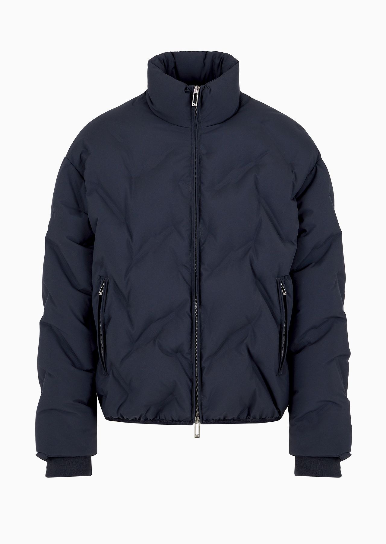 Nylon down jacket with full-zip closure. The 100% polyester texture is made from two bonded fabric layers and is embellished with an iconic all-over embossed eagle that creates a unique matelasse effect. The cosiness of the genuine down padding between the two layers gives this outerwear piece a unique style that is high-performance and comfortable. Product Code: 6D1BD61NUEZ10920 Details Composition 100% Polyester Nylon Matelasse-effect embossed micro eagles Genuine down padding Mock neck Full zip Side pockets with zip Long sleeves Stretch cuffs Fitting The model is 188 cm tall and is wearing size 48/M (Italian Size)