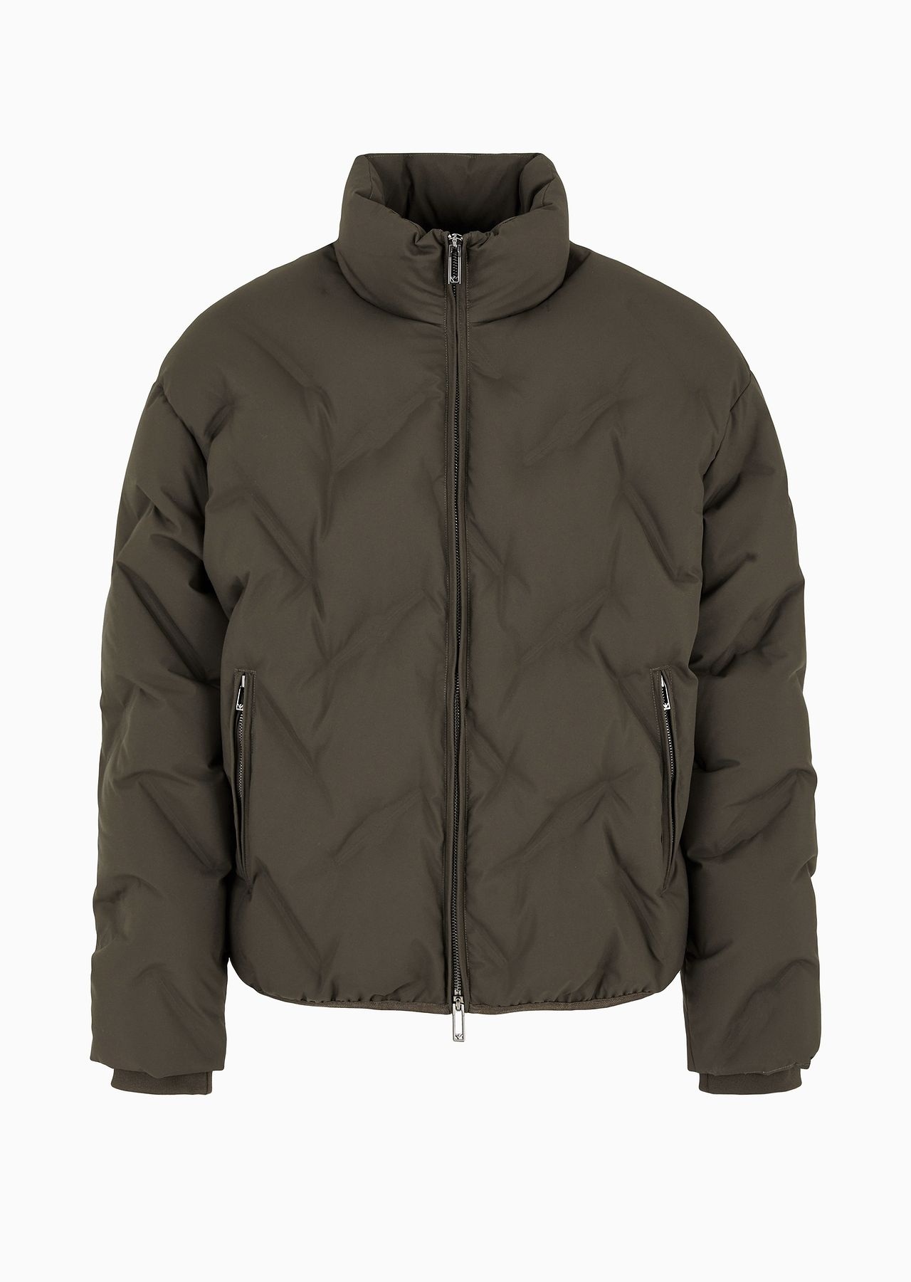 Nylon down jacket with full-zip closure. The 100% polyester texture is made from two bonded fabric layers and is embellished with an iconic all-over embossed eagle that creates a unique matelasse effect. The cosiness of the genuine down padding between the two layers gives this outerwear piece a unique style that is high-performance and comfortable. Product Code: 6D1BD61NUEZ105A6 Details Composition 100% Polyester Nylon Matelasse-effect embossed micro eagles Genuine down padding Mock neck Full zip Side pockets with zip Long sleeves Stretch cuffs Fitting The model is 188 cm tall and is wearing size 48/M (Italian Size)