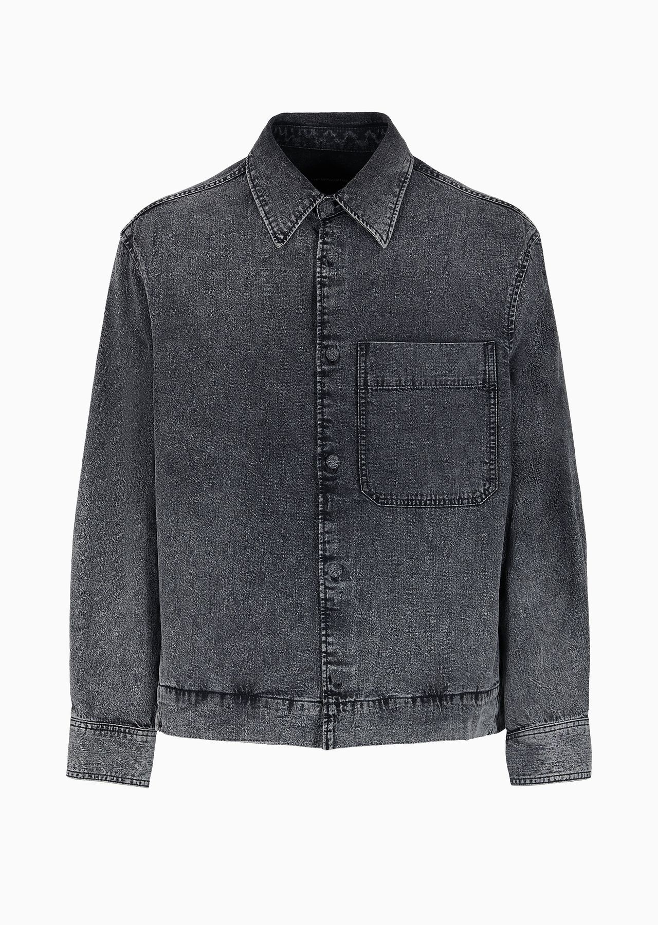 Classic-collar shirt jacket made from garment-treated pure-cotton denim. The shirt-style construction lends a breezier attitude compared to real outerwear. Denim reasserts itself in the Emporio Amani collections: the fabric gives the casual urban attitude that is the essence of streetwear to total looks, uniforms and layers while maintaining a refined feel. Product Code: 6D1C9P1D6CZ10006 Details Composition 100% Cotton Denim Classic collar Front buttoning Denim-covered buttons Patch pocket on the chest Long sleeves Straight buttoned cuffs Back yoke
