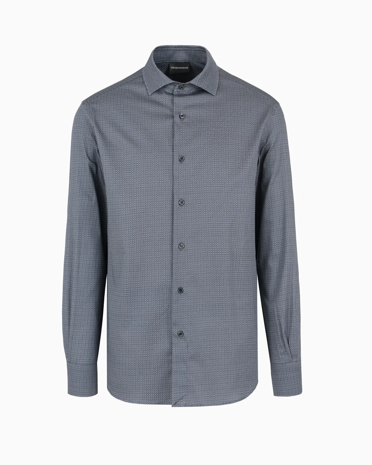 Classic-collar shirt made of stretch-cotton fabric with a dense, exclusive all-over printed decorative pattern. A style that completes seasonal looks with a fresh, modern twist. Product Code: 6D1C861K6BZ1F947 Details Composition 97% Cotton 3% Elastane Stretch cotton All-over print Classic collar Front buttoning Long sleeves Buttoned rounded cuffs Back yoke Fitting The model is 188 cm tall and is wearing size 40