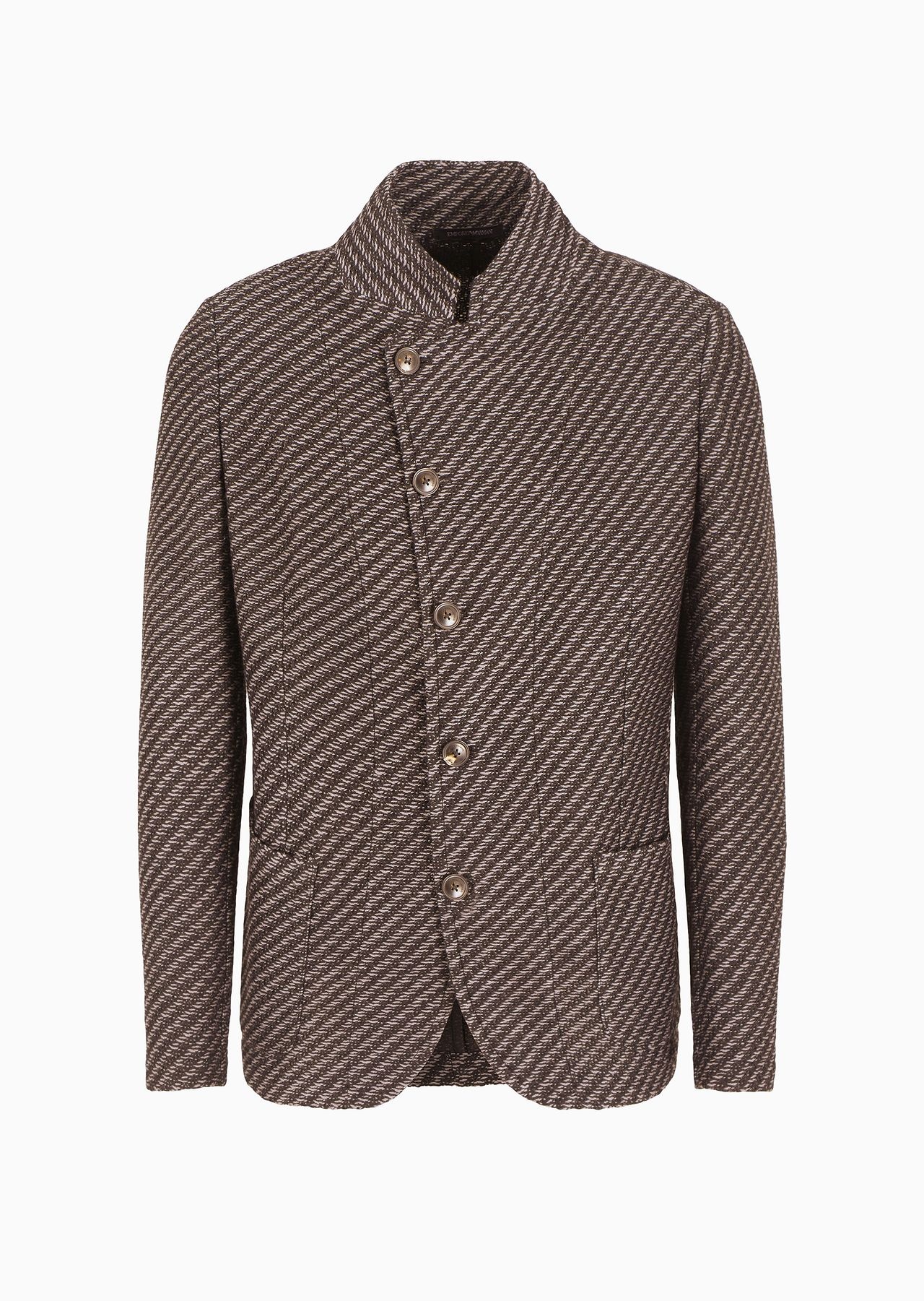 Guru-collar jacket with off-centre fastening in a wool-blend knit-effect jersey