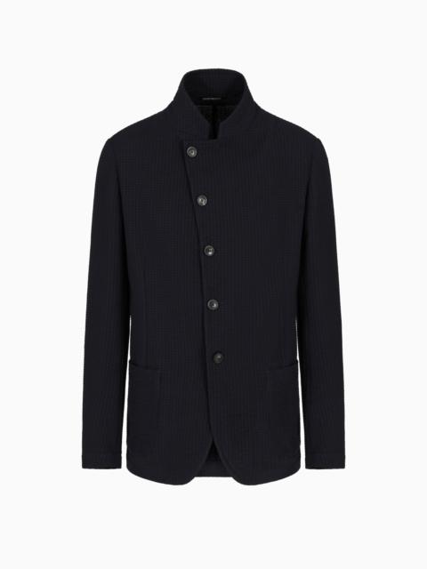 GURU-COLLAR JACKET WITH OFF-CENTRE FASTENING IN ARMURE VIRGIN WOOL