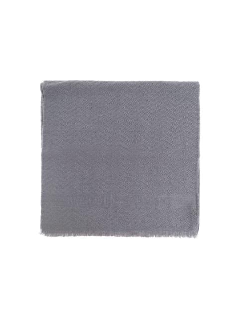 herringbone wool scarf Highlights - Grey - Herringbone pattern - Frayed edges - Woven texture - Subtle logo - Rectangular shape Made in Italy Composition Wool 100% Washing instructions Read Manufacturer Guidelines