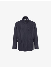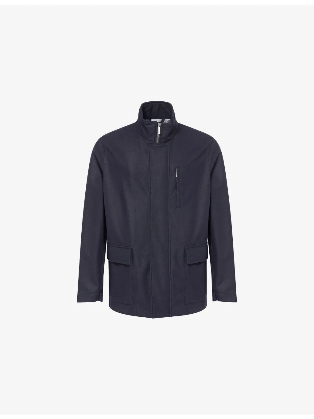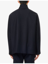 PRODUCT DETAILS - Emporio Armani wool coat - 89% virgin wool, 11% polyamide; contrast 100% polyamide; filling 100% polyester - Concealed popper and zip fastening at front - Relaxed fit, high-neck, long sleeves, buttoned cuffs, zip pocket and two buttoned pockets at front, brushed, all-over padded - Machine wash at 30°C - Made in Bulgaria - Size UK 40: length 29in / 75cm, chest 46in / 117cm - Model is 6ft 2in/1.88m and wears a size UK 40 - Lightweight, non-stretch Ref: R04537674