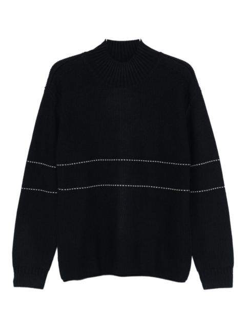 high-neck striped sweater