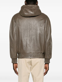 hooded leather bomber jacket