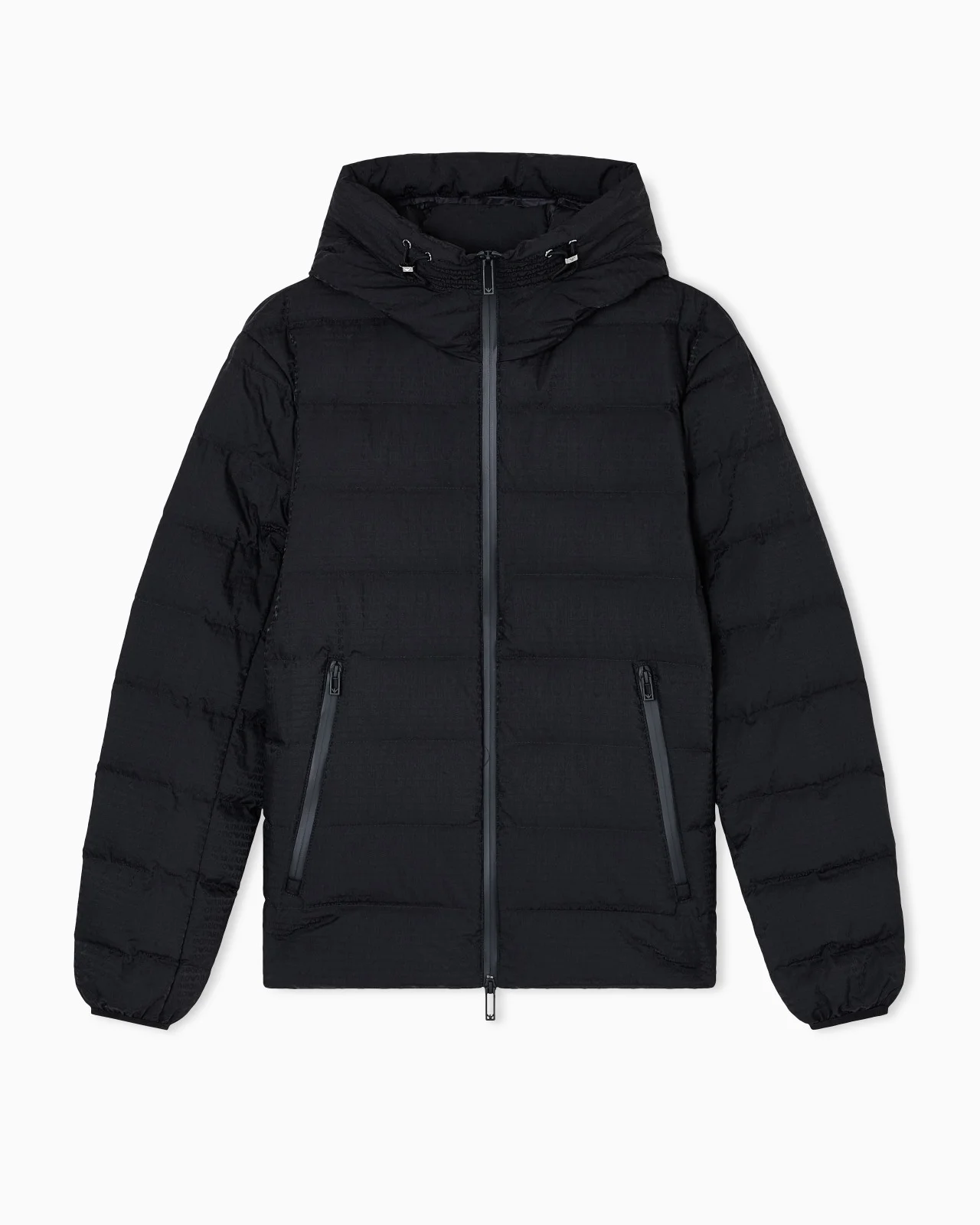 Down jacket with drawstring hood and full-zip fastening. Nylon item featuring a dense, all-over logo lettering jacquard pattern. A quilted, versatile and sophisticated style whose functionality and modernity are enhanced by the genuine down filling. Nylon All-over jacquard logo Genuine down padding Hood with pull tabs Full-zip closure Long sleeves Stretch cuffs Side zip pockets with warm plush lining Inner pocket with compartment and zip Product Code: EM003043AF15384UC001