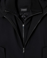 Zip-up sleeveless jacket with hood, made from stretch wool canvas with a compact finish, a fabric with a fresh and formal look. The distinctive nature of the piece comes from the attached inner panel with a full-zip fastening. Stretch wool canvas Hood Full-zip closure Side welt pockets with flap and press stud Sleeveless Fixed inner panel Satin quilted inner back Product Code: EM004711TE19331UC001