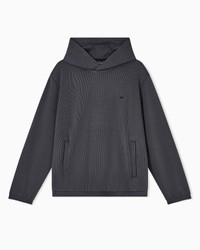 Hooded sweatshirt made from a modal blend fabric and featuring a weave created with all-over embossed ribs typical of traditional cannete fabric, highlighting a contrast that adds an exclusive plated effect. A ultra pliable and fluid texture elevates the garment. Cannete fabric Plated effect Hood Micro eagle embroidery Side pockets Long sleeves Elasticated hem Product Code: EM005386AF21866U8136