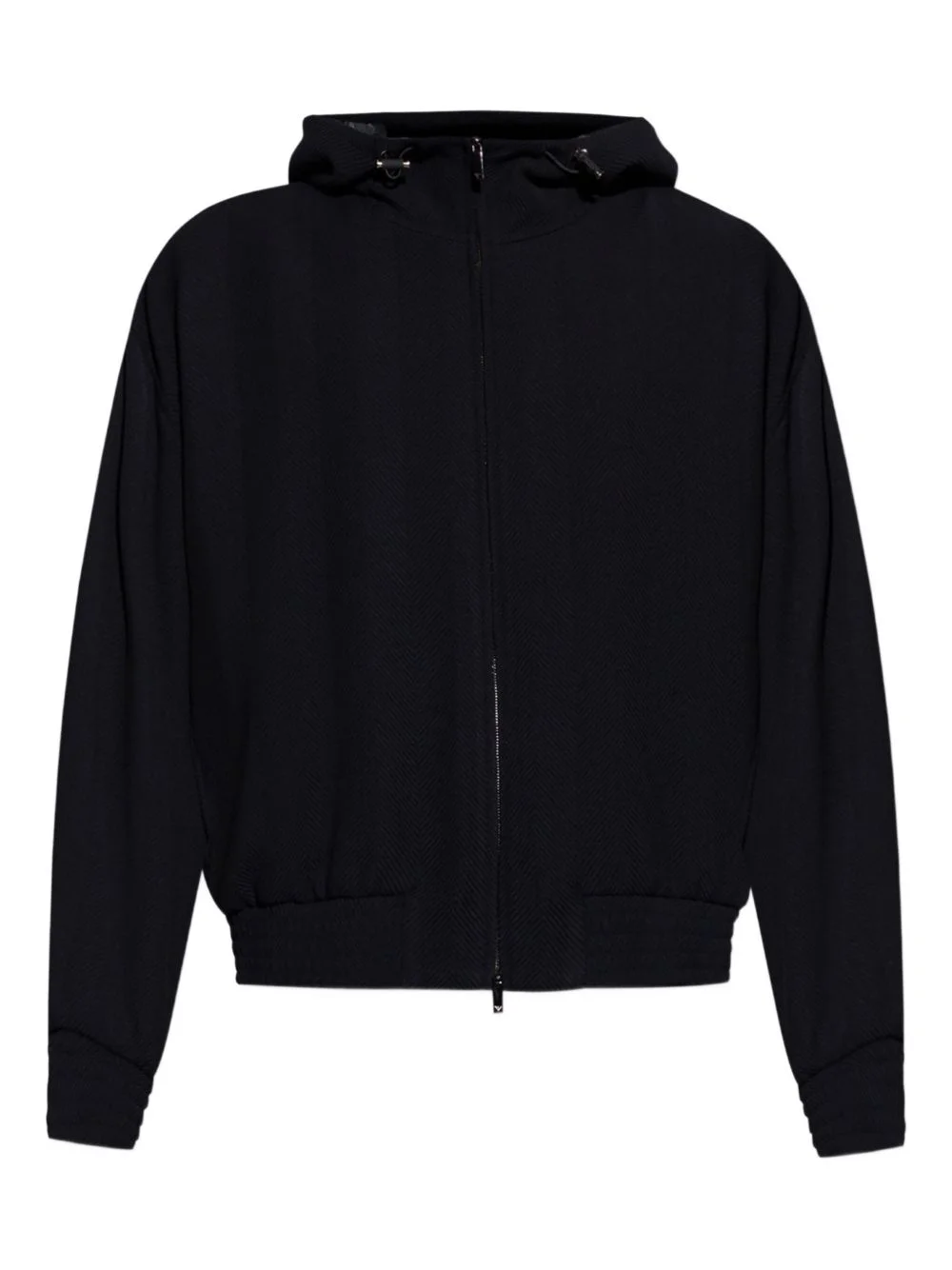 hooded zip wool jacket Highlights - Black - Herringbone weave - Zip fastening - Hooded - Elasticated hem - Elasticated cuffs Imported Composition Outer: Virgin Wool 98%, Elastane 2% Lining: Viscose 100% Washing instructions Read Manufacturer Guidelines