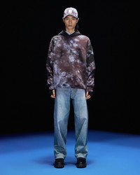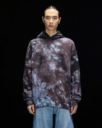 Oversized hooded sweatshirt in organic cotton jersey made with natural fibres from organic farming, featuring a tie-dye print all over. Emporio Armani maintains its focus on sustainability with the new Armani Sustainability Values (ASV) capsule collection, highlighting the need for a supply chain that is responsible and attentive to the resources of our planet. Named Black Blue, this futuristic collection takes us to a colour dimension that evokes distant, uncharted planets. The alternation of two key colours, blue and black, explodes in the Cosmos print, giving the entire collection a modern feel. The clothing is defined by atypical contrasting shapes: sometimes oversized for exceptional comfort and freedom of movement, and sometimes super skinny to enhance the silhouette with ultra-elongated lines. Hints of feminine colour harmoniously complete the blue-black pairing. Product Code: 6D1MFA1JQAZ1F945 Details Composition 100% Cotton The fabric is made of 100% organic cotton Oversized fit Jersey Tie-dye print Hood Long sleeves Brushed lining