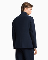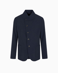 Jacket with a hallmark guru collar, off-centre button fastening and slim lapels at the neckline when not fully closed. Made from micro-textured crepe jersey with a unique three-dimensional pique effect and an especially fluid and lightweight look. The Icon capsule collection is dedicated to the Emporio Armani man and celebrates, season after season, the versatility and timeless elegance of the brand, reworking iconic clothing with a modern twist, in a perfect harmony of tradition and innovation. The FW25 selection is initially defined by fluid and airy silhouettes that play on blue and camel tones, then continues with a focus on exclusive knitwear distinguished by graphic designs and patterns with a strong visual impact. Crepe jersey Micro-textured weave Buttoned fastening Long sleeves Side patch pockets Unlined garment Product Code: EM000144TE14101UB081