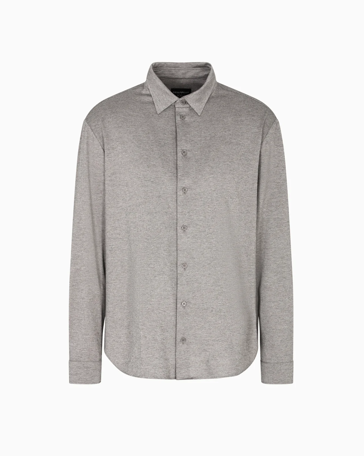 Classic collar shirt made of cotton jaspe jersey with a characteristic melange finish. The jaspe fabric has a marled appearance thanks to the use of fancy yarns. This feature comes from yarns composed of two to three coloured elements that create different shades and an irregular appearance. The piece is part of the Icon Autumn/Winter 2025 capsule collection. Jaspe jersey Classic collar Front buttoning Long sleeves Angled cuffs Back yoke Product Code: EM000099AF19986O6002