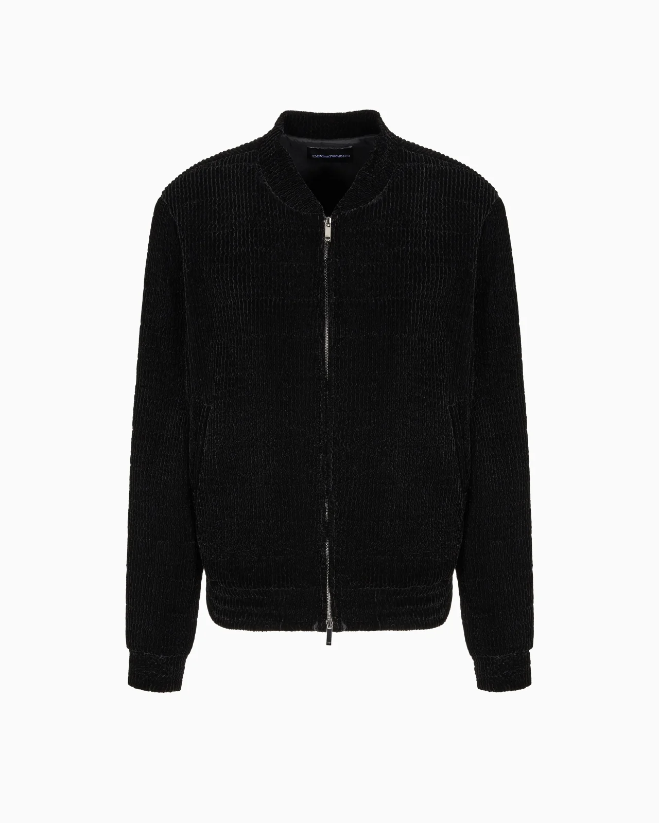 Blouson with bomber-jacket collar and zip fastening. A particularly refined texture with a smooth velvet base with a very dense vertical quilted weave that recreates the effect of an embossed jacquard and gives the fabric texture. The piece is part of the Icon Autumn/Winter 2025 capsule collection. Velvet Quilted jacquard construction Bomber-jacket collar Zip closure Open side pockets Long sleeves Elasticated trim Product Code: EM000358TE17074UC001
