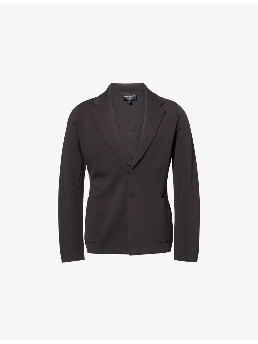 PRODUCT DETAILS - Emporio Armani knitted blazer - 65% viscose, 35% polyamide - Button fastening - Regular fit, notched lapels, long sleeves, two patch pockets at front, all-over stretch knit, unlined - Hand wash - True to size - Size UK 40: length 29in / 73.7cm, chest 44in / 111.6cm - Model is 6ft 2in/1.88m and wears a size UK 40 - Midweight, slight stretch Ref: R04556458