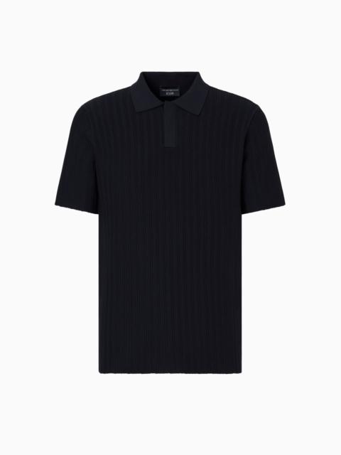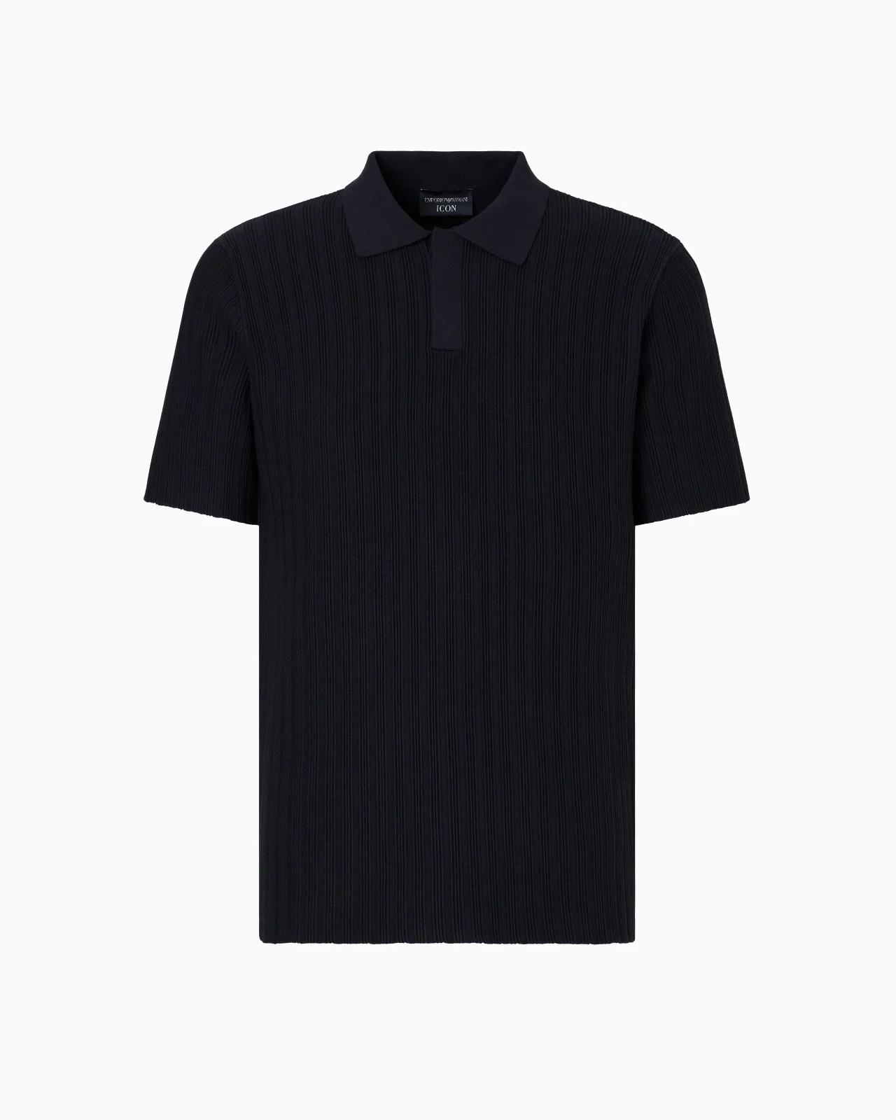 Polo-neck jumper featuring an ottoman knit with a traditional embossed rib-effect motif. The Icon capsule collection dedicated to the Emporio Armani man is revived for the SS25 season: the result is a selection of the most iconic pieces in the collection that affirm the Emporio Armani heritage. The colour palette is typically Armani, with essential navy blue paired with white and a series of natural shades ranging from greige to nut-brown. Emporio Armani’s DNA achieves its finest expression in sophisticated and comfortable total looks, thanks to soft textures, tactile patterns and fluid silhouettes. Fineness: 16 Ottoman-stitch knit Polo-shirt collar Concealed partial buttoning Short sleeves Product Code: EM000636AF14128UB109