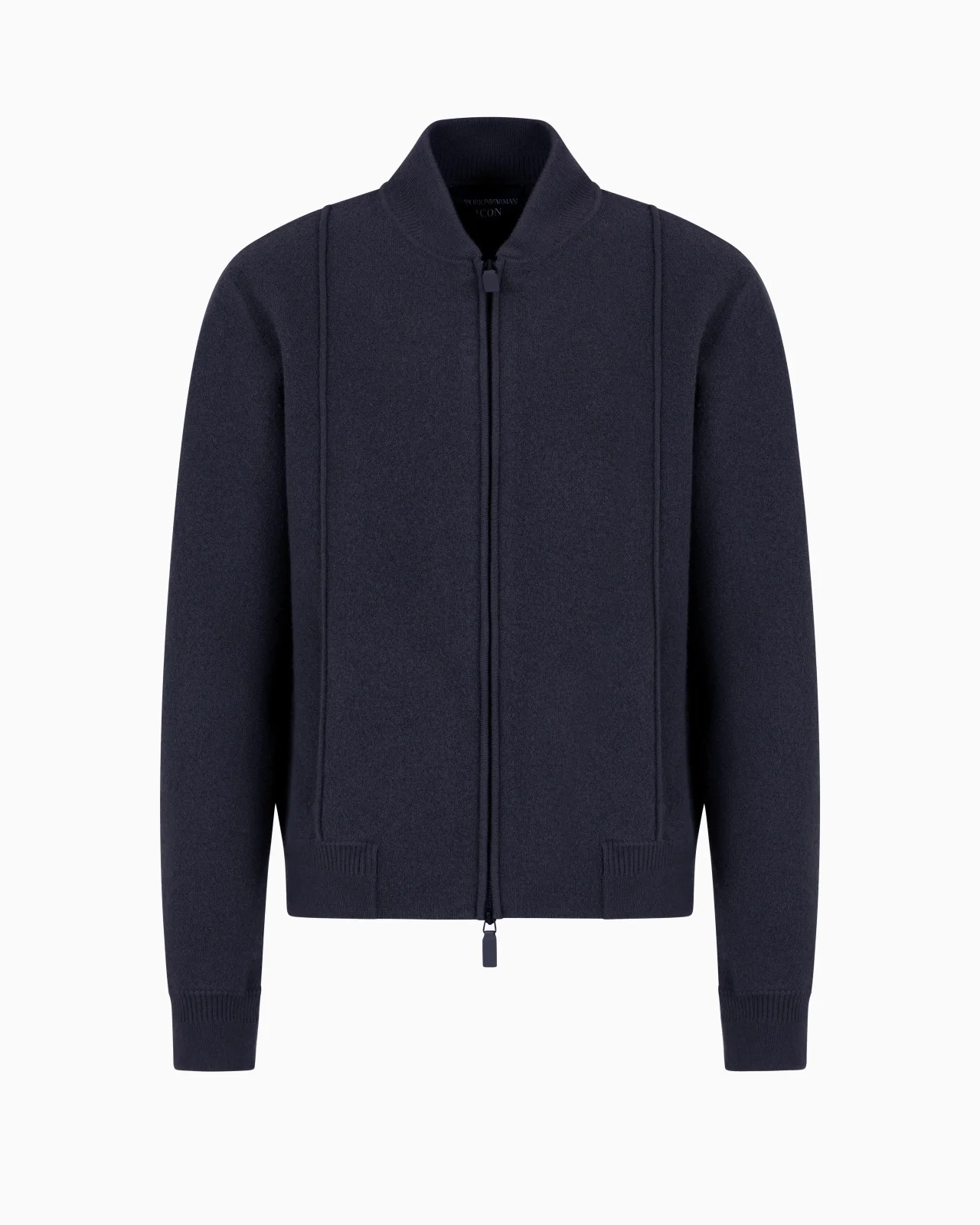 Blouson with zip fastening and decorative ribs, made of pure virgin wool knit. Designed to create layered outfits, the piece can also be worn as a cardigan. Designed for the Emporio Armani man, the Icon capsule collection is an exclusive new addition to the AW24 season. It focuses on updating knitwear, in particular knitted fabric, reworking the most iconic shapes that have always defined the brand. The Emporio Armani DNA finds its ultimate expression in complete looks for winter defined by knitted textures designed for comfort and relaxation. Fineness: 12 Stitched fabric jumper Bomber-jacket collar Zip closure Decorative ribs Long sleeves Ribbed trim Side welt pockets Product Code: EM000505AF12218UB109