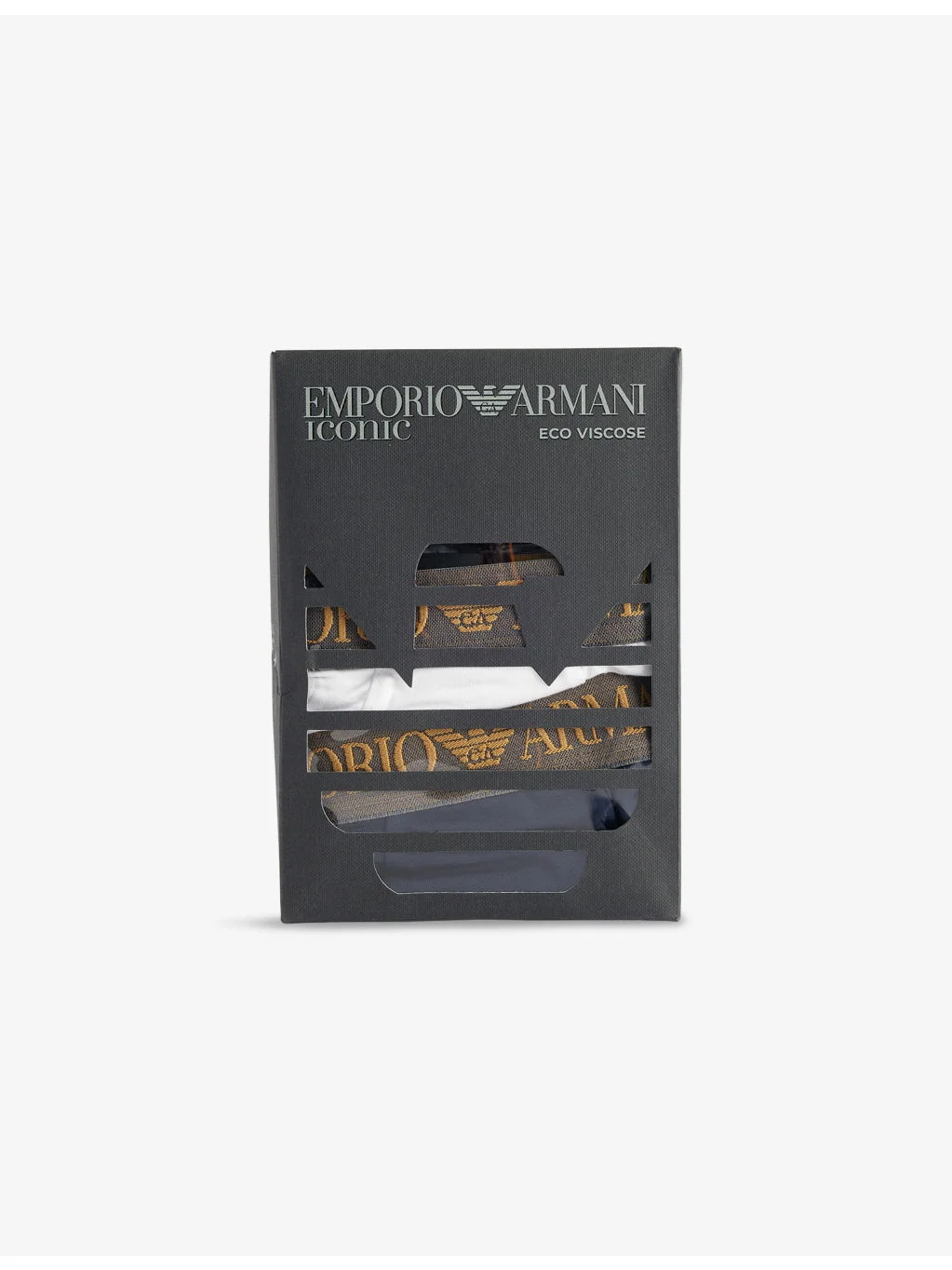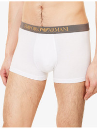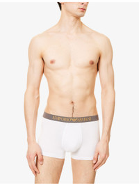 PRODUCT DETAILS - Emporio Armani pack of two stretch-woven trunks - 95% viscose, 5% elastane; contrast 60% polyester, 28% polyamide, 12% elastane; lining 95% viscose, 5% elastane - Mid-rise, branded elasticated waistband, supportive panel at front, partially lined - Machine wash at 30°C - Model is 6ft 2in/1.88m and wears a size medium - Lightweight, stretchy - For hygiene reasons, we are unable to exchange or refund this product, unless faulty. Ref: R04458064