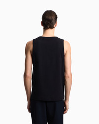 Round-neck tank top made of pure cotton jersey, characterized by logo embroidery available in different variations depending on the model, giving distinction. The interlock finish, a woven texture reminiscent of the look of jersey and creates a honeycomb effect, makes the garment even softer and more elastic. The garment belongs to the Icon capsule. Jersey Finish Interlock Logo Embroidery Round Neckline Sleeveless Product Code: EM005550AF25183F8097