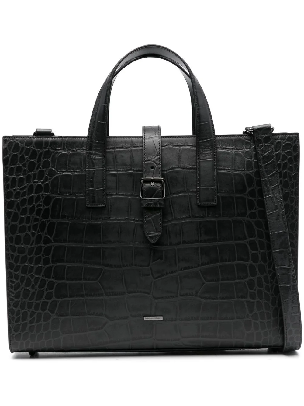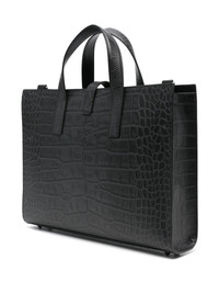 crocodile-embossed buckle tote bag Highlights - Black - Crocodile effect - Buckle fastening - Top handles - Rectangular shape Imported Composition Lining: Cotton 42% Outer: Calf Leather 100% SIZE & FIT Model measurements Height 6 ft 1 in(1.85 m) Bust/Chest 35.82 in(91 cm) Hips 37.79 in(96 cm) Waist 29.13 in(74 cm) Measurement DEPTH 3.14 in(8 cm) HANDLE 5.51 in(14 cm) HEIGHT 12.99 in(33 cm) WIDTH 15.74 in(40 cm)