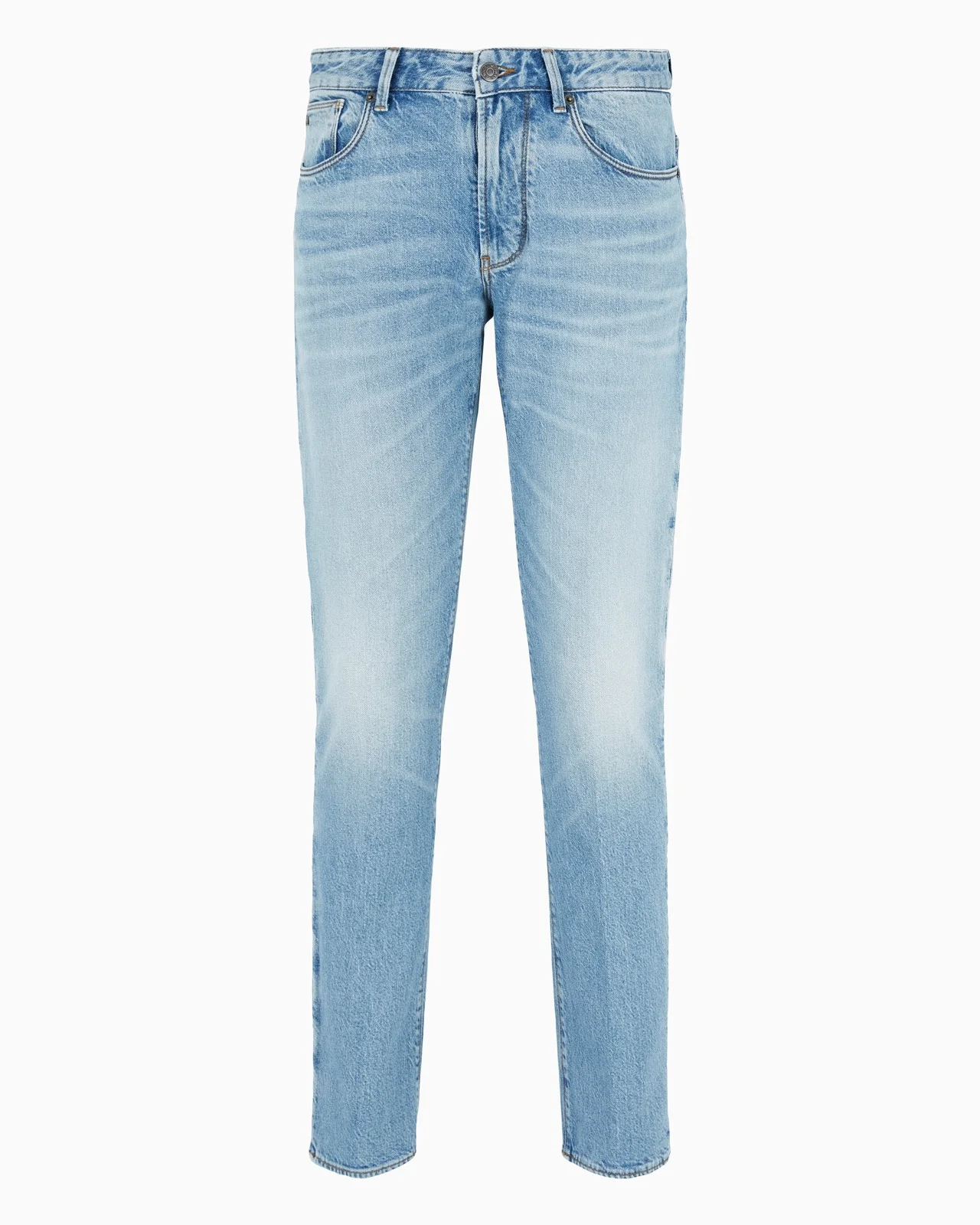 J06 Slim-fit, 12.2 oz stone-washed denim jeans with veining