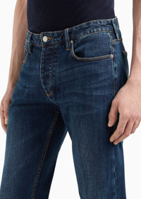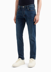 These men’s jeans made from washed stretch-cotton denim are an evergreen wardrobe classic. The style has a narrow leg, low-rise waist and a button fly. A garment that naturally adapts to multiple combinations and a wide array of occasions. Slim fit. Product Code: 3D1J751DRRZ10942 Details Composition 98% Cotton 2% Elastane Slim fit Washed denim Five-pocket style Low-rise waist with loops Button closure Logo tag Eagle plate Contrasting topstitching Fitting The model is 188 cm tall and is wearing size 32