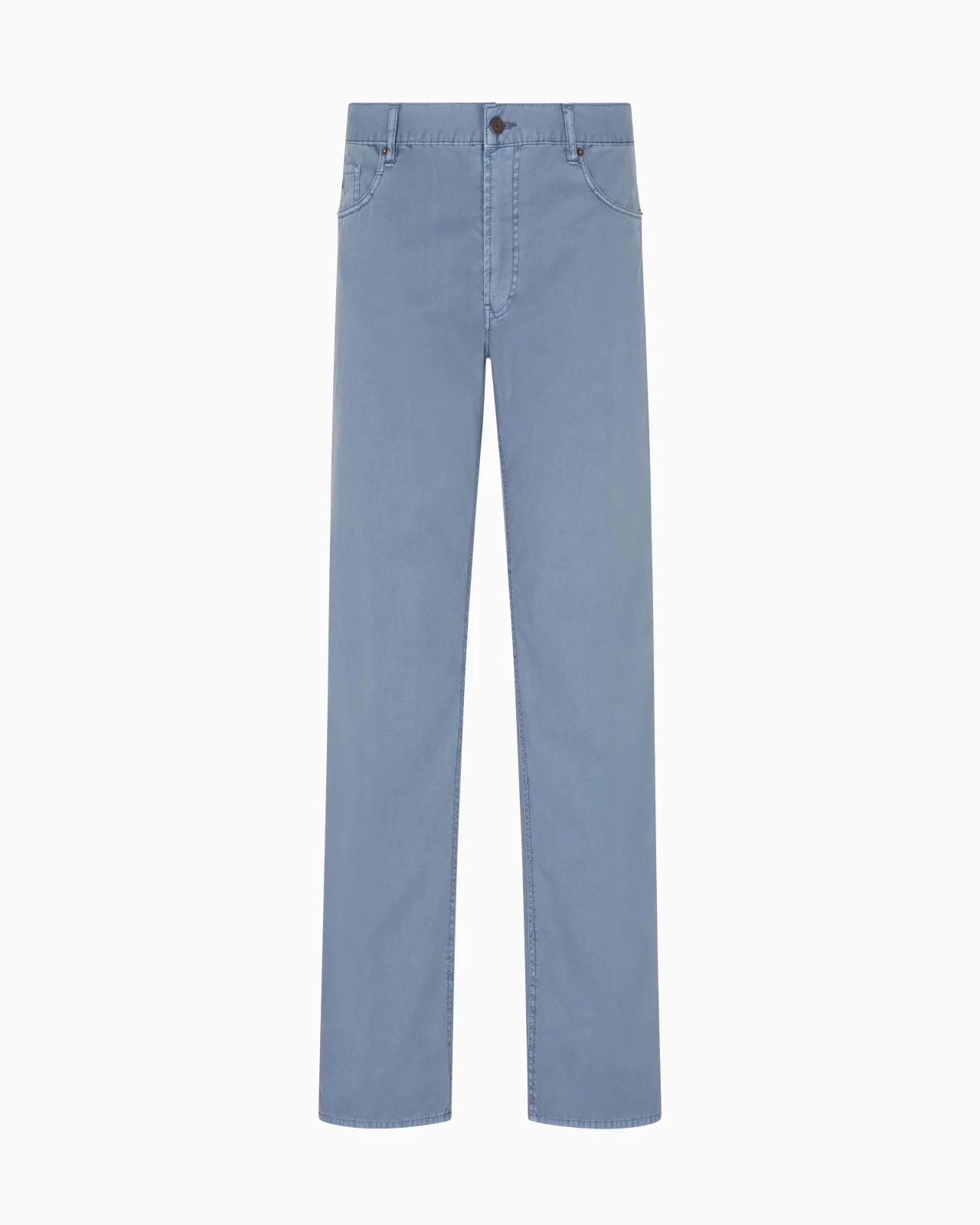 Five-pocket trousers featuring a regular waist, straight leg, comfortable rise and zip closure. The garment is made of pure cotton, in a typical diagonal twill weave that adds durability and enhances the urban appeal of the style. Straight fit. Ankle cuffs: 21 cm Straight fit Five-pocket style Regular waist with loops Zip and button closure Coin pocket with EA logo plate Leather logo tag Eagle plate Product Code: EM000763AF18515U9369