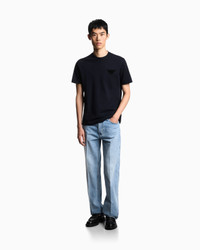 Five-pocket jeans featuring a regular waist, straight leg, comfortable rise and zip closure. The particularly rigid weave is treated with an enzyme stone wash that creates a distinctive worn look on the canvas, with characteristic refined front ribs. Straight fit Five-pocket style Regular waist with loops Zip closure Coin pocket with logo plate Leather logo tag Eagle logo plate Product Code: EM000763AF17805MB003
