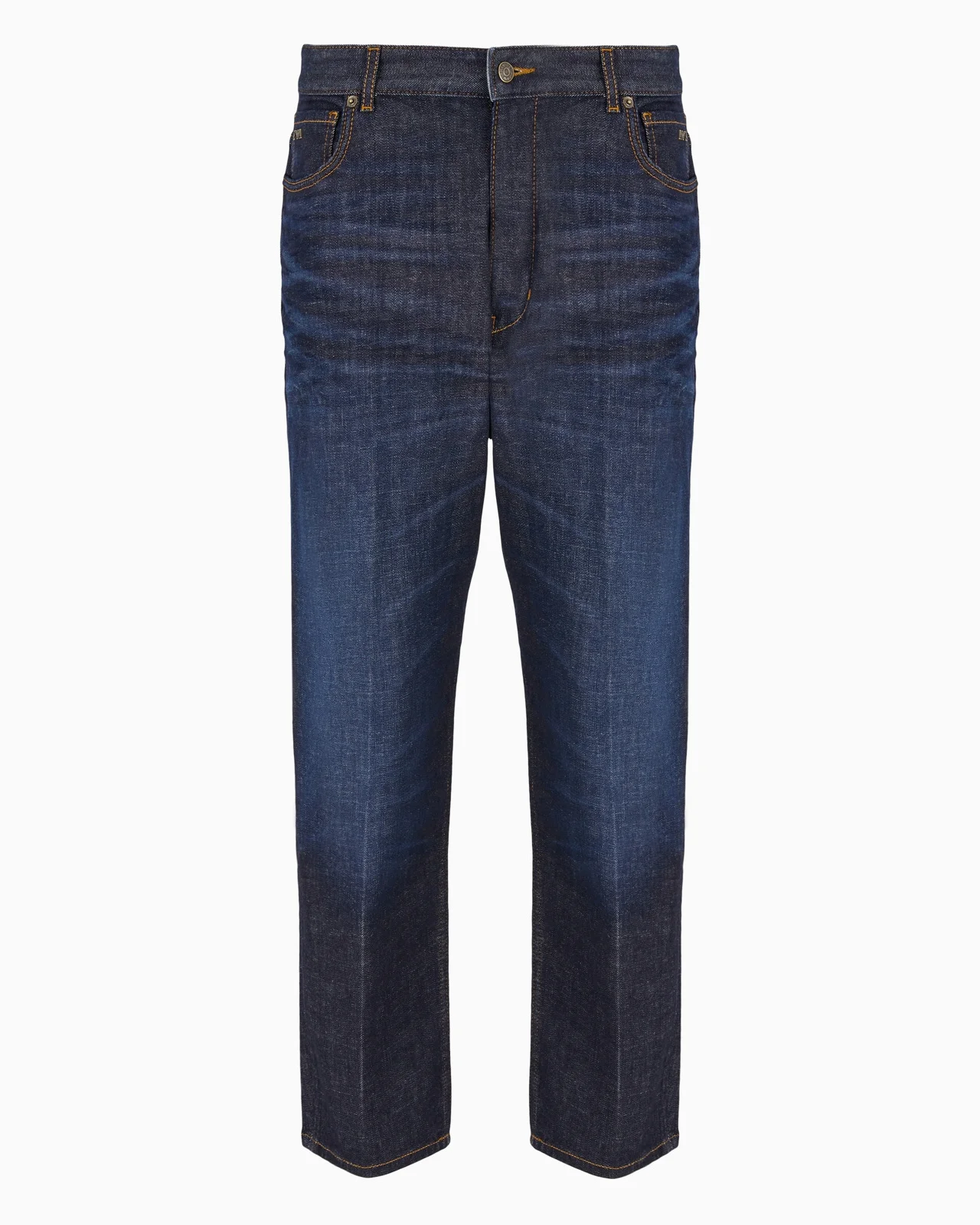Jeans made of stretch-cotton denim with a rinse-wash treatment that has traditional veining at the front and is completed by tobacco-coloured stitching. A modern piece that offers a casual yet refined appeal: the carrot-fit style features a wide leg at the thighs and narrow at the ankles, a regular waist, dropped crotch and zip fastening. Product Code: 6D1J791D88Z10942 Details Composition 94% Cotton 4% Elastomultiester 2% Elastane Carrot fit 11.4 oz denim Five-pocket style Regular waist with loops Zip and button closure Logo tag Metal eagle logo plate on the back Tobacco-coloured stitching Fitting The model is 188 cm tall and is wearing size 32