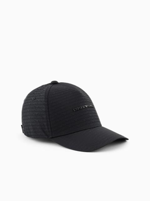 Nylon baseball cap with matching all-over jacquard logo lettering. Having recently roared back into style, the baseball cap is the ultimate, iconic sportswear accessory. It completes a wide array of outfits with a playful touch. Product Code: 6274354F551100020 Details Composition 100% Polyamide Nylon Jacquard All-over logo lettering Metal logo Rigid visor Adjustable Velcro at the back