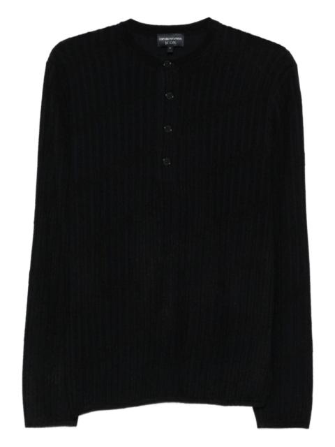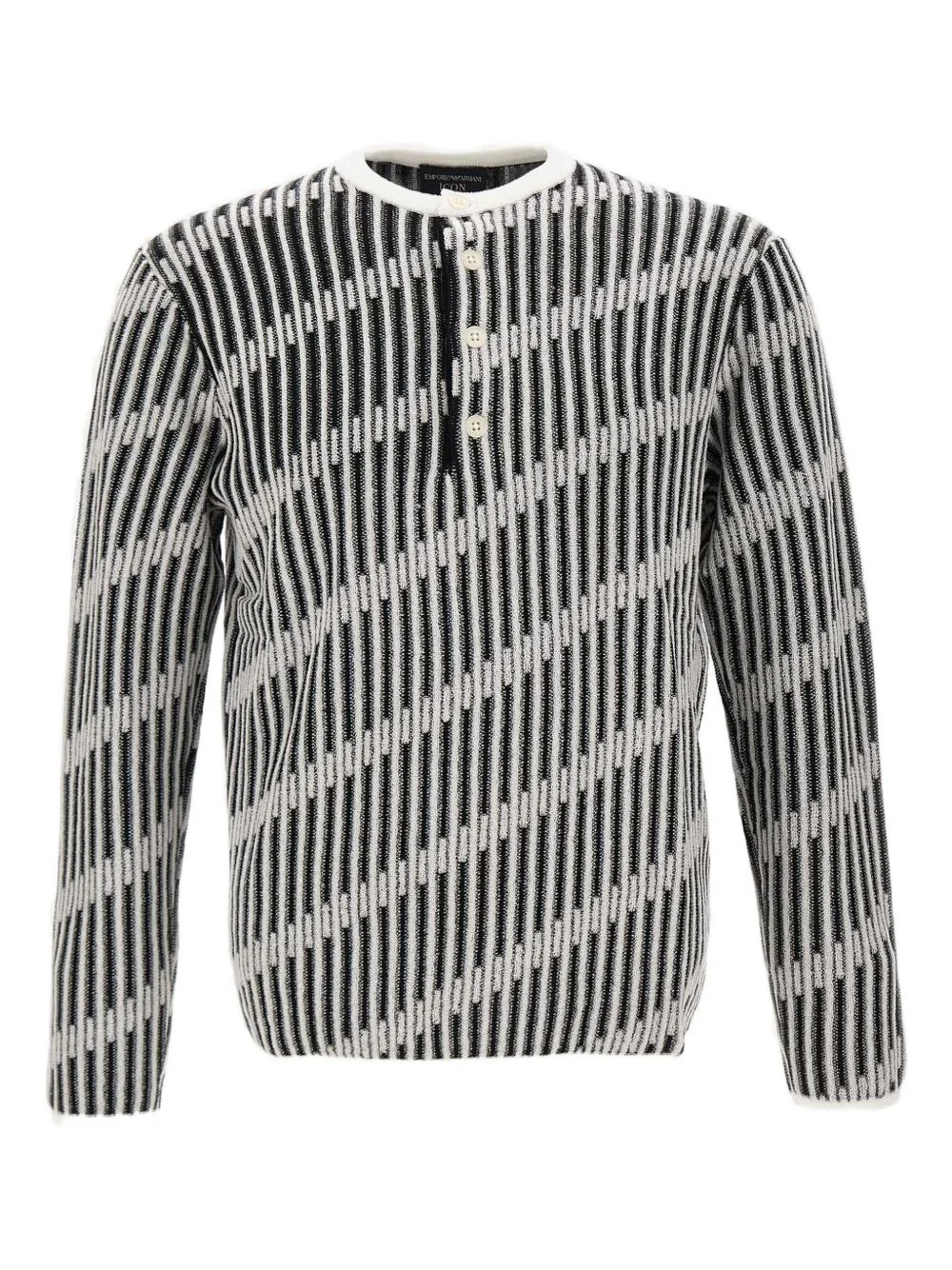 jacquard button-fastening sweater Highlights - Black and white - Long sleeves - Henley neck - Four-buttons fastening Imported Composition Wool 72%, Viscose 17%, Polyamide 11%