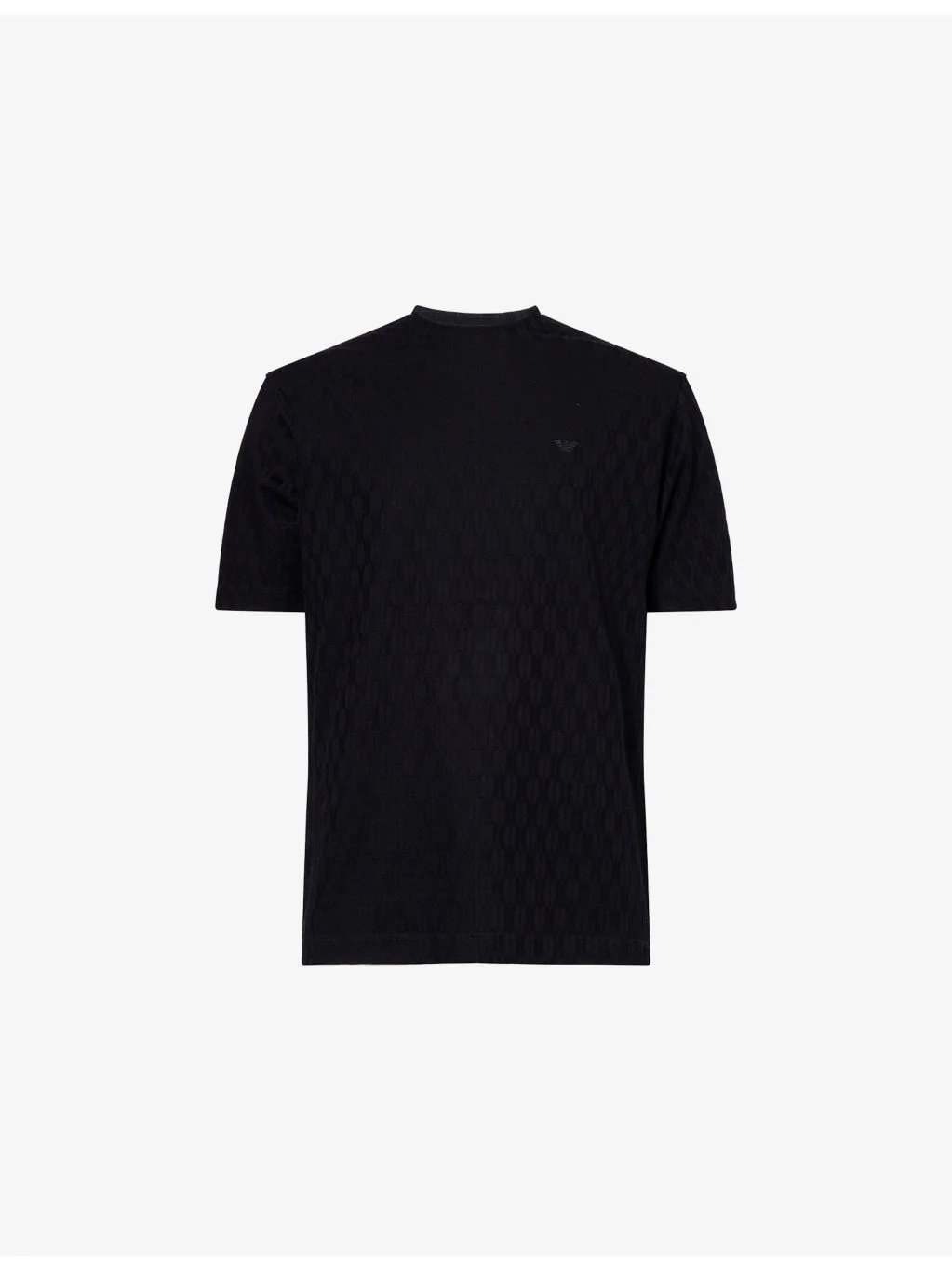 PRODUCT DETAILS - Emporio Armani cotton-jersey T-shirt - 100% cotton - Regular fit, ribbed crewneck, short sleeves, eagle embroidery at front, all-over jacquard pattern - Machine wash at 30°C - Made in Turkey - Model is 6ft 2in/1.88m and wears a size medium - Lightweight, stretchy Ref: R04569269