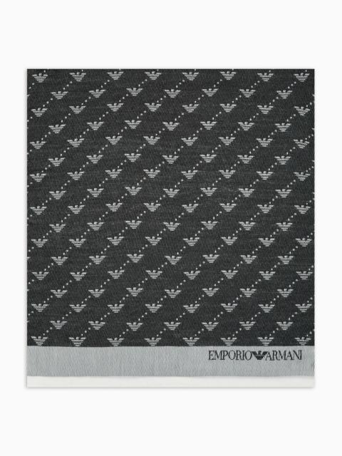 Stole made of jacquard-weave fabric, with all-over iconic eagles and Emporio Armani logo on the left hem. Product Code: 6252094F310100020 Details Composition 60% Polyester 40% Acrylic Measurements: 190 x 85 cm Jacquard All-over eagle design Fringed trim Made in Italy