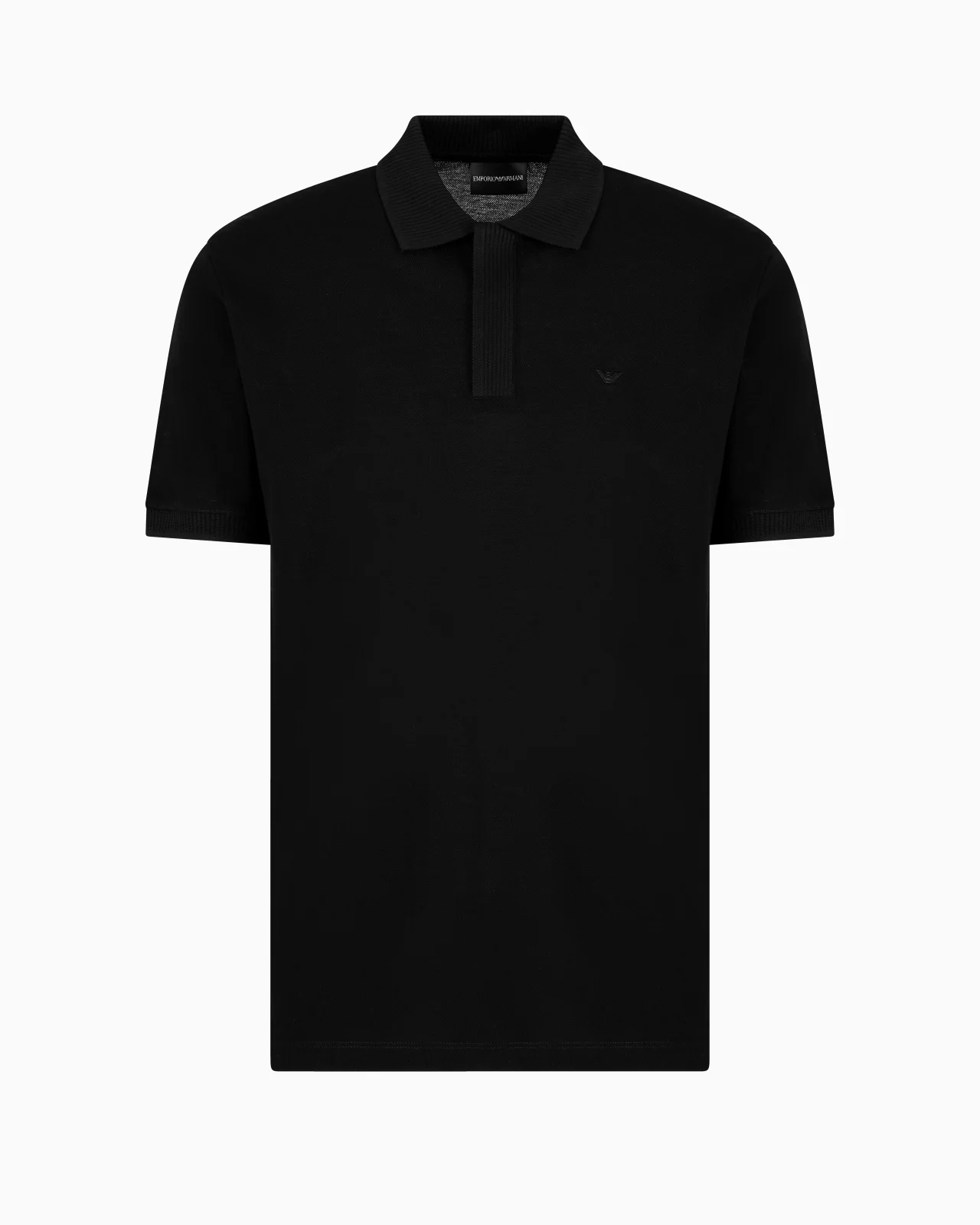 Polo shirt made from pure cotton jersey. The matching, iconic micro eagle embroidery on the chest completes the style with distinction. This sophisticated style can be worn anywhere and with anything. Jersey Polo-shirt collar Partially hidden closure Short sleeves Micro eagle embroidery Ribbed trim Product Code: EM000850AF12955UC001