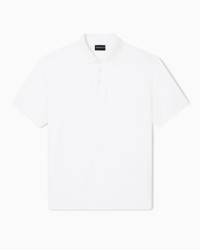 Polo shirt made from pure cotton jacquard jersey. The texture is defined by a dense monochromatic pattern featuring all-over logo lettering. This item belongs to the Essentials selection, the Emporio Armani offering that is an evergreen statement of style: an ongoing collection with clean, well-designed shapes for a wardrobe that meets the demands of any season. These “essential”, versatile pieces are a must-have for the male wardrobe. Regular fit Jersey Jacquard All-over lettering Polo-shirt collar Partial button opening Short sleeves Ribbed fabric edges Product Code: EM004595AF10762F0185