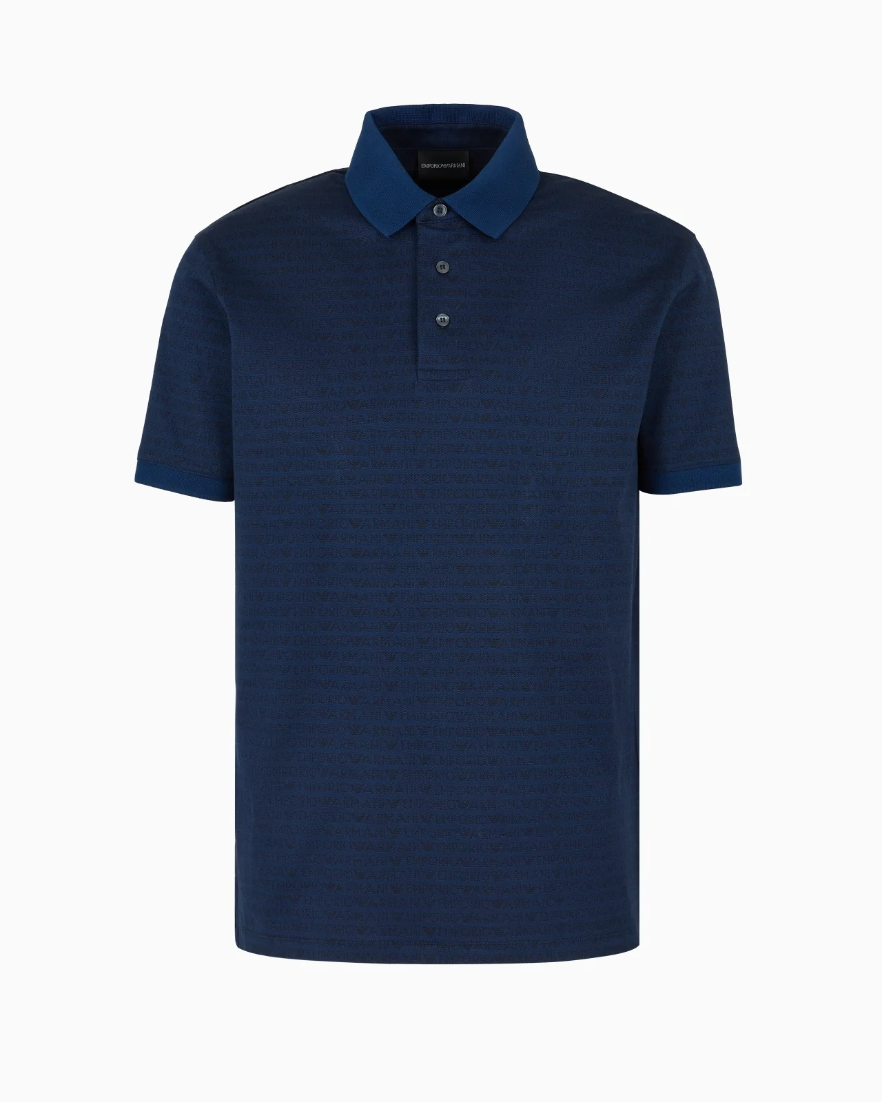 Polo shirt made from pure cotton jacquard jersey. The texture is defined by a dense monochromatic pattern featuring all-over logo lettering. The Emporio Armani logo is a constant of undeniable style, whether it’s shown off, displayed or just hinted at. Regular fit Jersey Jacquard All-over lettering Polo-shirt collar Partial button opening Short sleeves Ribbed fabric edges Product Code: EM000788AF12916FB224