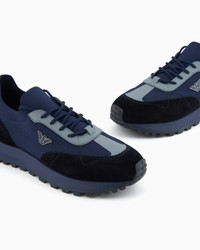 Sneakers made from knit fabric and suede, with an eagle logo on the side that distinguishes the style. The customised running shoe sole is made of recycled EVA with non-slip tread. Sophisticated in style and deeply inspired by traditional running sneakers, they are versatile and suitable for even the most elegant occasions. Knit upper Suede details Side eagle logo Lace-ups Rounded toe Rubber soles Product Code: EM003739AF19724MC038