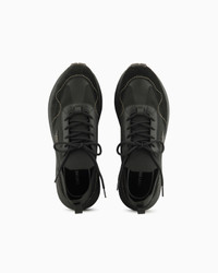 Sneakers made from knit fabric and suede, with an eagle logo on the side that distinguishes the style. The customised running shoe sole is made of recycled EVA with non-slip tread. Sophisticated in style and deeply inspired by traditional running sneakers, they are versatile and suitable for even the most elegant occasions. Product Code: X4X659XR1051Q781 Details Composition 75% Polyester 25% Elastane Knit upper Suede details Side eagle logo Lace-ups Rounded toe Rubber soles