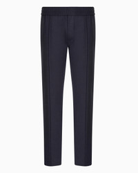 Men's joggers made from knitted jersey. Elasticated internal drawstring waist and front ribbing. This item belongs to the Essentials clothing selection, the Emporio Armani capsule collection that is an evergreen statement of style: an ongoing collection with clean, well-designed shapes for a wardrobe that meets the demands of any season. These “essential”, versatile pieces are a must-have for the male wardrobe. Product Code: 8N1PL61JEZZ10920 Details Composition 63% Viscose 32% Polyamide 5% Elastane Knitted jersey Elasticated waist Inner drawstring Front ribs Side pockets Buttoned back welt pockets Back eagle logo patch Fitting The model is 188 cm tall and is wearing size 48/M (Italian Size)