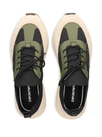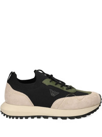 knitted suede sneakers Highlights - Beige - Black knitted upper - Olive green panel - Suede heel counter - Lace-up fastening - Rubber sole Imported Composition Outer: Fabric 50%, Leather 25%, Other Materials 25% Sole: Rubber 100% Lining: Fabric 100%