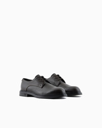 Leather Derby shoes with a grained finish. A collection of high-quality Made-in-Italy formal footwear featuring a logo on the outer sole: ideal for completing outfits with practical elegance, a truly versatile style dedicated to the modern businessman. Product Code: X4C653XF583100003 Details Composition 100% Calf-skin leather Pebbled leather Rounded toe Lace-up fastening Rubber soles Made in Italy